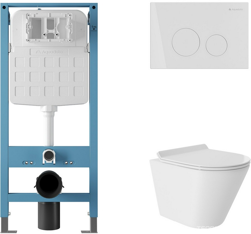 Комплект: унитаз подвесной безободковый, сиденье с микролифтом, инсталляция для подв.унитаза, крепёж, клавиша смыва цв.хром, Acqua ZZ
