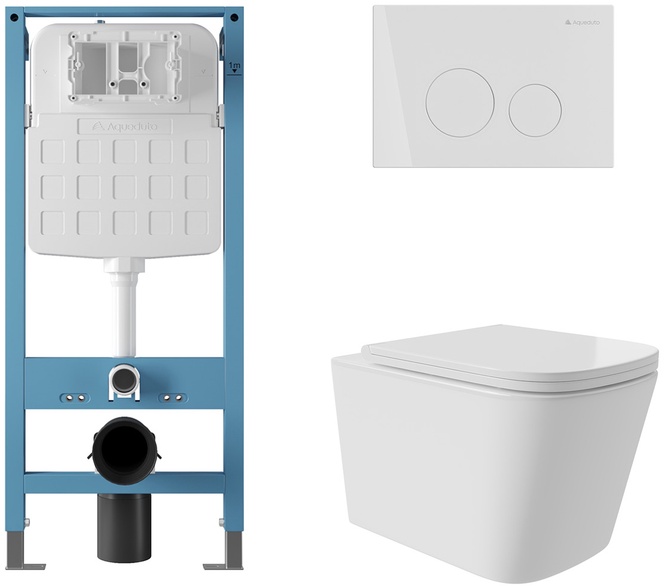 Комплект: унитаз подвесной безободковый, сиденье с микролифтом, инсталляция для подв.унитаза, крепёж, клавиша смыва цв.белый, Onda ZZ
