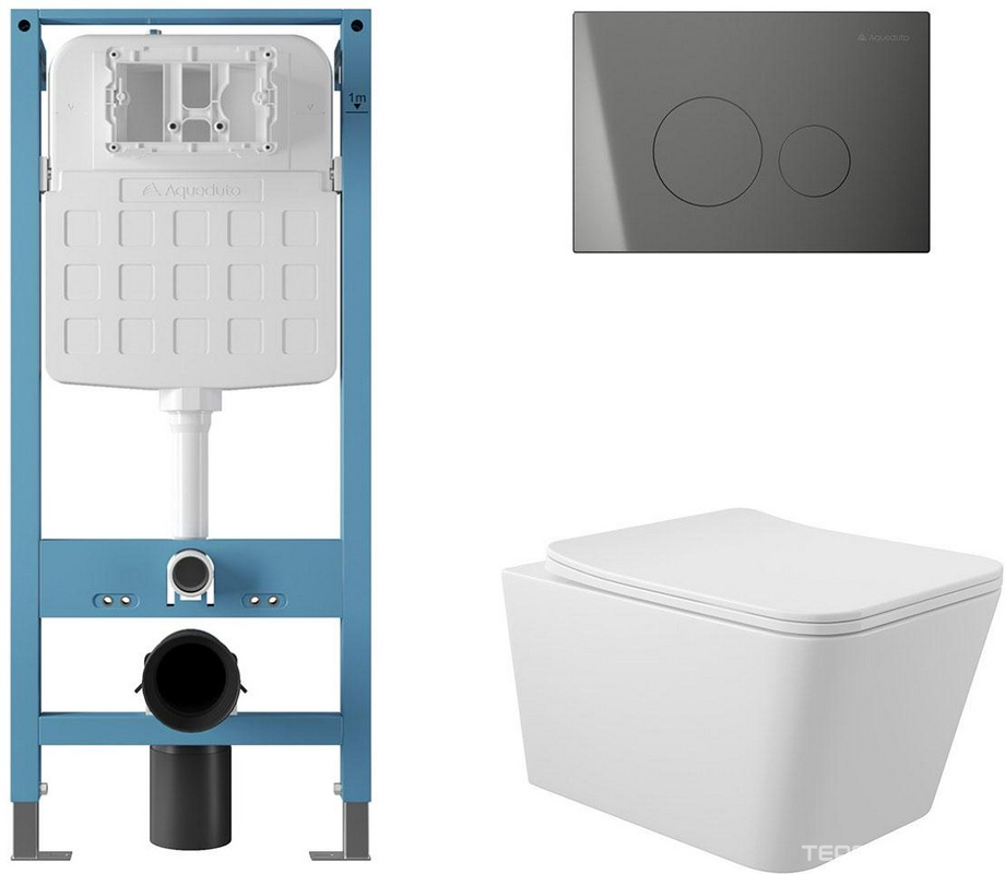 Компл.: унитаз подвесн.,безободк.,520х370мм,цв.белый глянц., сиденье с микролиф,,инстал. д/унит., крепёж,клавиша смыва Quadrado цв.черный мат,Macio ZZ