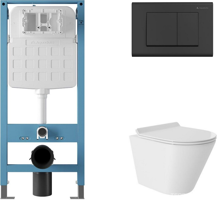 Комплект: унитаз подвесной безободковый, сиденье с микролифтом, инсталляция для подв.унитаза, крепёж, клавиша смыва цв.хром, Acqua ZZ