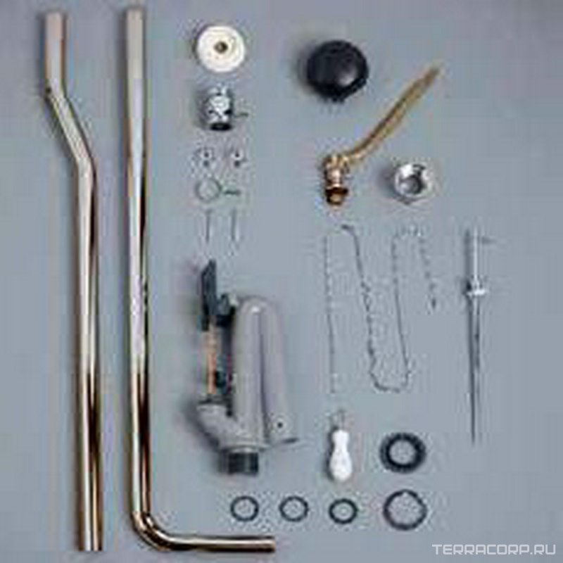 Механизм смыва, трубы слива, патрубки, соединения, цепочка, ручка, крепёж, для "Высокого" бачка, (цв. бронза), Simas ZZ