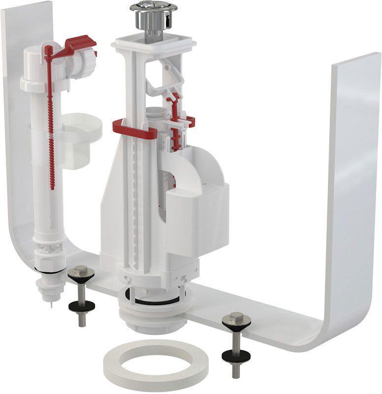 Двухрежимная арматура 3/6 л. для бачка, универсальная, нижний подвод 1/2, хром.кнопка, комплект