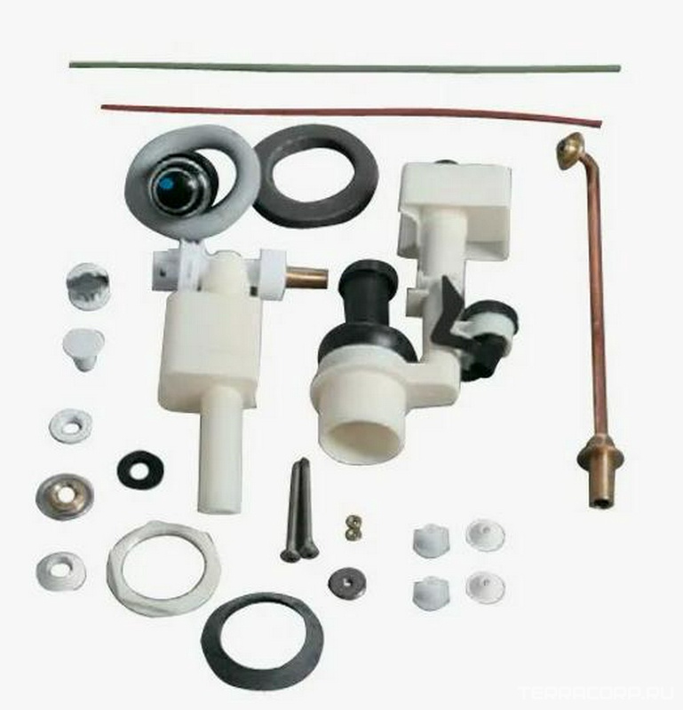 Механизм смыва, трубы слива, патрубки, соединения, цепочка, ручка, крепёж, для "Высокого" бачка, (цв. хром), Simas ZZ