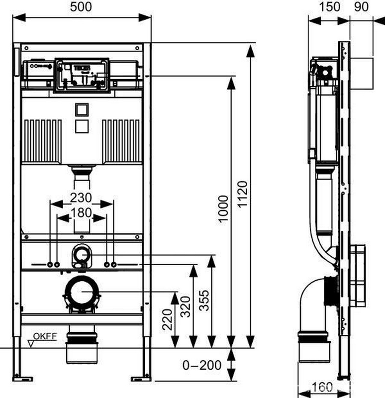 Монт.рама с бачком д/подв.унитазов-биде,50х15xh112см,монтаж со всеми панелями смыва,(БЕЗ крепл.арт.9380300, к-та подкл.9880052)TECEprofil Uni 2.0ZZ