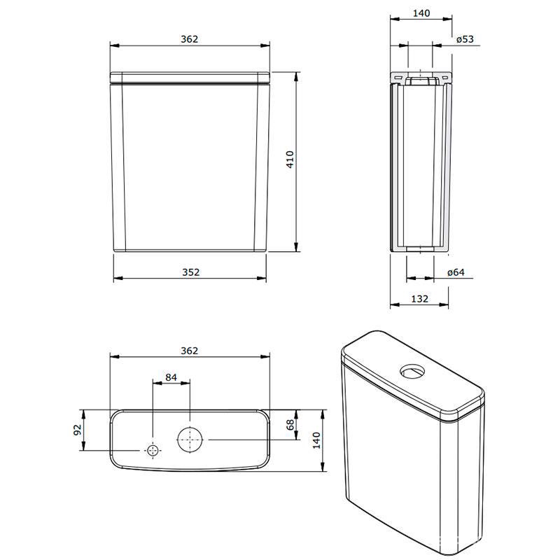 Бачок для унитаза, подвод воды снизу слева, механизм двойного смыва 3\6л. в компл., Look ZZ