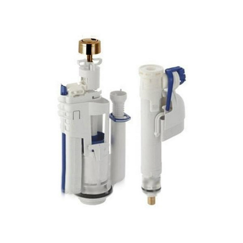 Двухрежимная арматура 3/6 л. для бачка, универсальная, нижний подвод 1/2, хром.кнопка, комплект