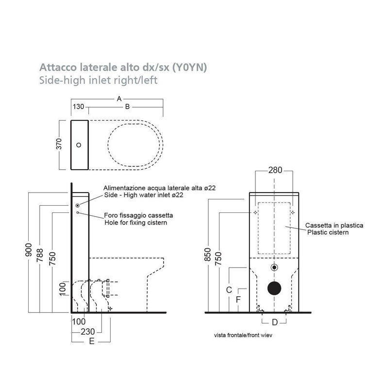 Бачок "Средний" с крышкой, д/чаши унитаза, с фронт. отверс. д/рычага смыва,подвод воды сбоку слева, БЕЗ мех.смыва с трубой соед., арт.D 23 хх, Lante