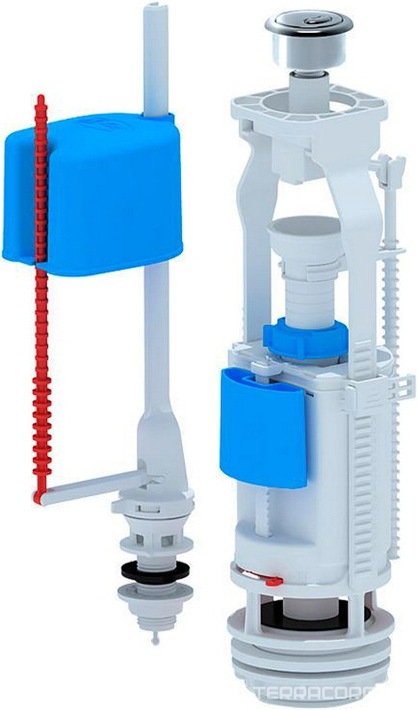 Двухрежимная арматура 3/6 л. для бачка, универсальная, нижний подвод 1/2, хром.кнопка, комплект