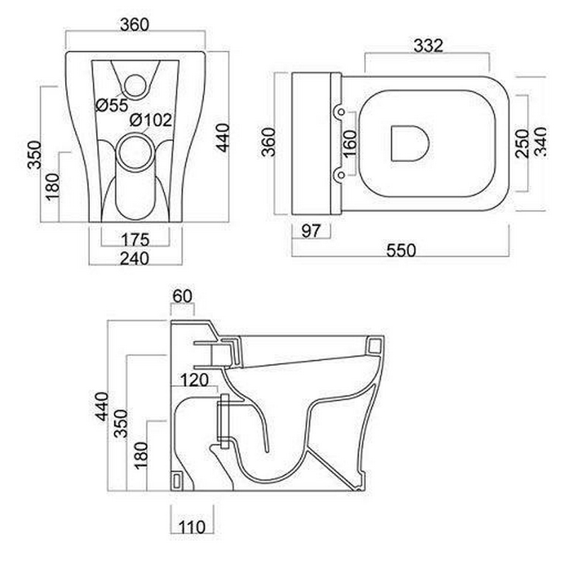 Чаша напольного унитаза 36х55хh44см, без бачка и сиденья, выпуск гориз., крепления к полу в компл. Opera Quadro ZZ
