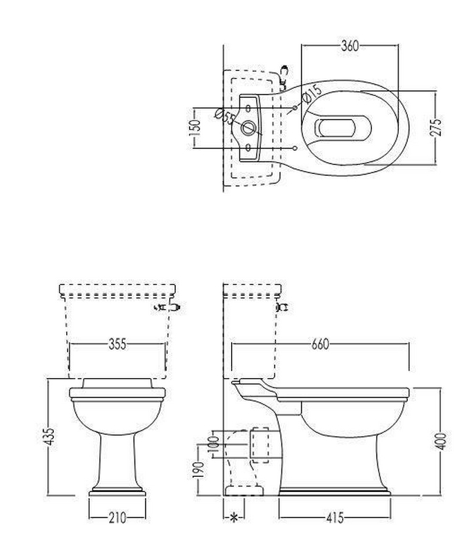 Чаша напольного унитаза 355х660мм, (без бачка и сиденья), Rose ZZ