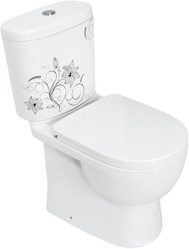Унитаз-компакт Art Flora, 755*630*345 мм, с арматурой GEBERIT, с сид.микролифт, крепеж в комплекте, с декором черно/белый XX