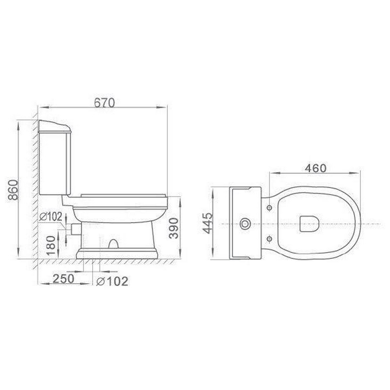 Чаша унитаза Old Italy, выпуск в стену, БЕЗ крышки-сиденья, БЕЗ бачка, XX