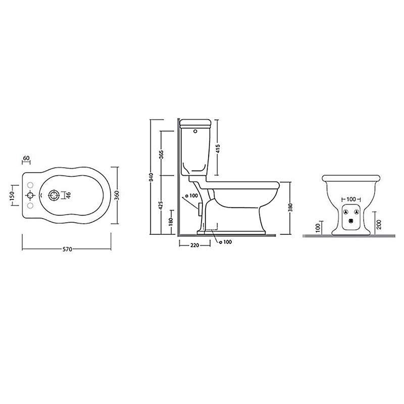 Чаша унитаза "Моноблок", СЛИВ В СТЕНУ, БЕЗ сиденья, БЕЗ комплекта креплений арт. TWBRF109-хх, Bristol ZZ