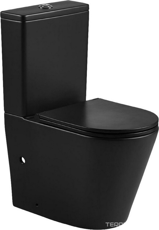 Унитаз напольный Azario Vetroa, безободковый с сиденьем микролифт в компл., 605х380х825 мм, цв. черный матовый, ZZ