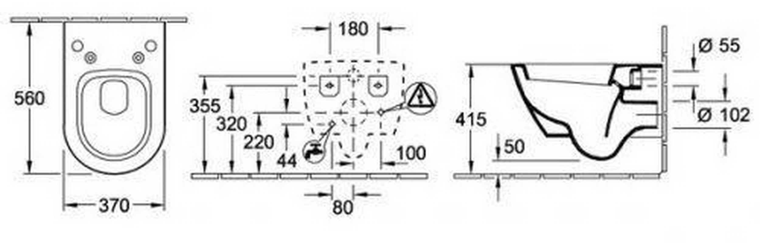 Унитаз подвесной 370х560мм,без внутр.смывн.ободка, БЕЗ сиденья-биде арт.V02E L4 01, скрыт/креп "SupraFix" в компл.,(цв.R1 white ceram+),Subway 2.0 KL