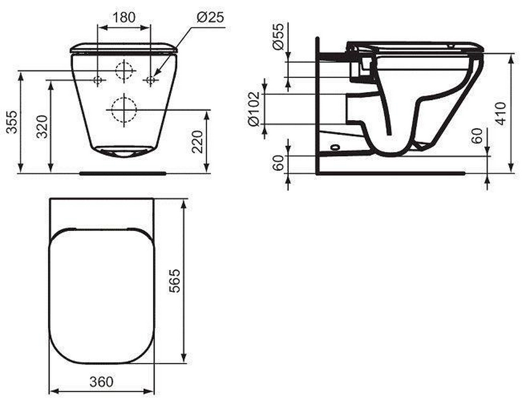 Унитаз подвесной 360х565мм, безободковый Aquablade, сиденье БЕЗ микролифта, крепёж в компл.,TONIC II KL