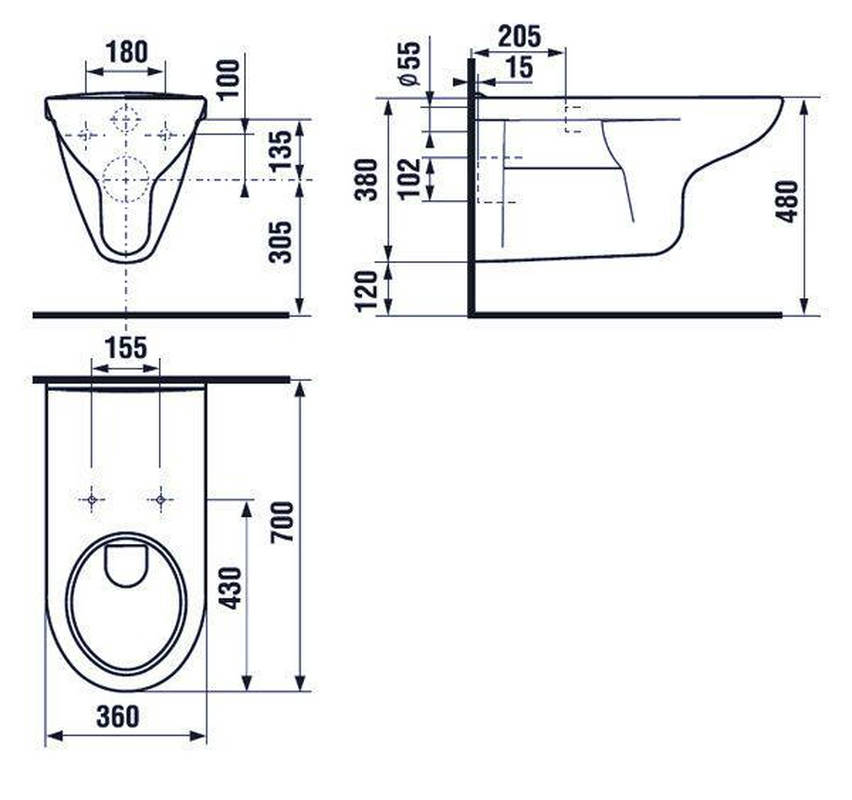 Подвесной унитаз OLYMP удлиненный 70 см, без крышки-сидения, без крепежа, белый ZZ