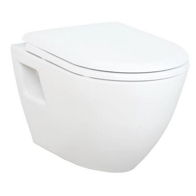 Унитаз подвесной 525х360мм, безободковый, сиденье с микролифтом, крепёж в компл., (цв.белый глянец), Ovo