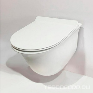 Унитаз подвесной 525х360мм, безободковый, сиденье с микролифтом, крепёж в компл., (цв.белый глянец), Ovo
