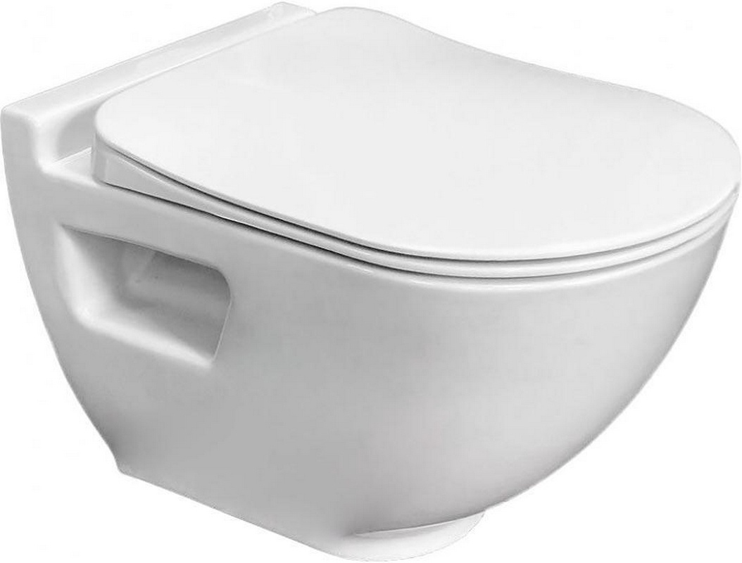 Унитаз подвесной 525х360мм, безободковый, сиденье с микролифтом, крепёж в компл., (цв.белый глянец), Ovo
