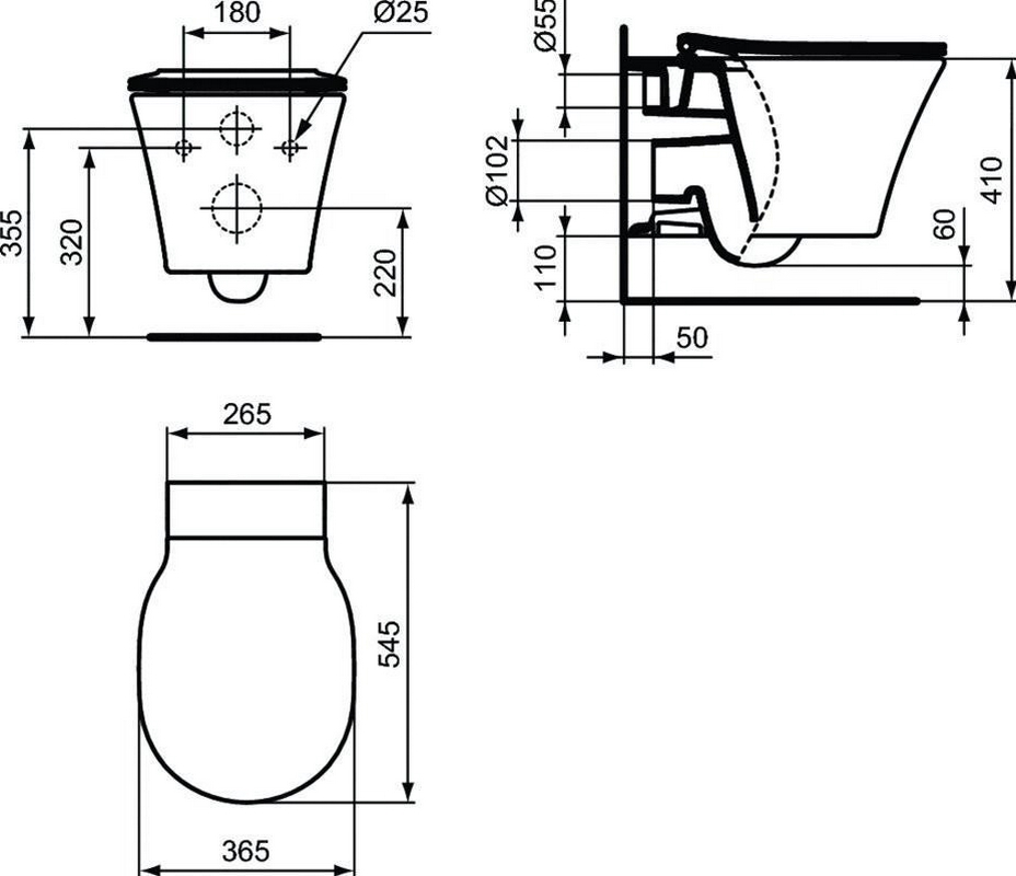 Унитаз подвесной Ideal Standard Connect Air K819501 безободковый| 54x36x35