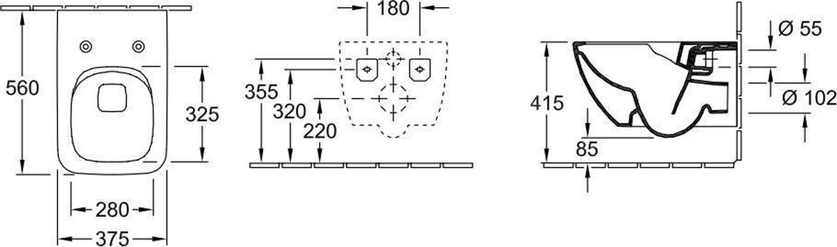 Унитаз подвесной Villeroy & Boch Legato 5663RLR1 alpin, безободковый| 56x37x33