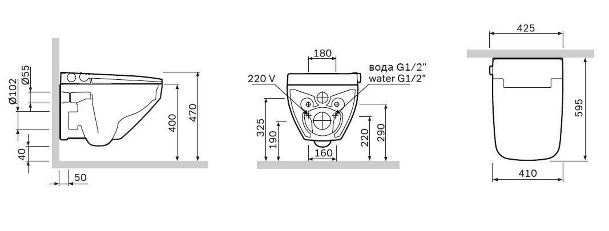 Унитаз подвесной AM.PM Inspire V2.0 CCC50A1700SC безободковый с биде| 59x41x35