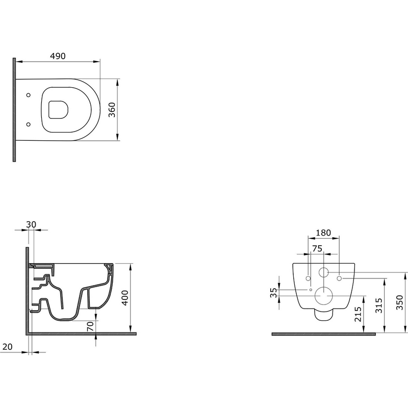 Унитаз подвесной Bocchi Parma 1417 белый| 49x36x38