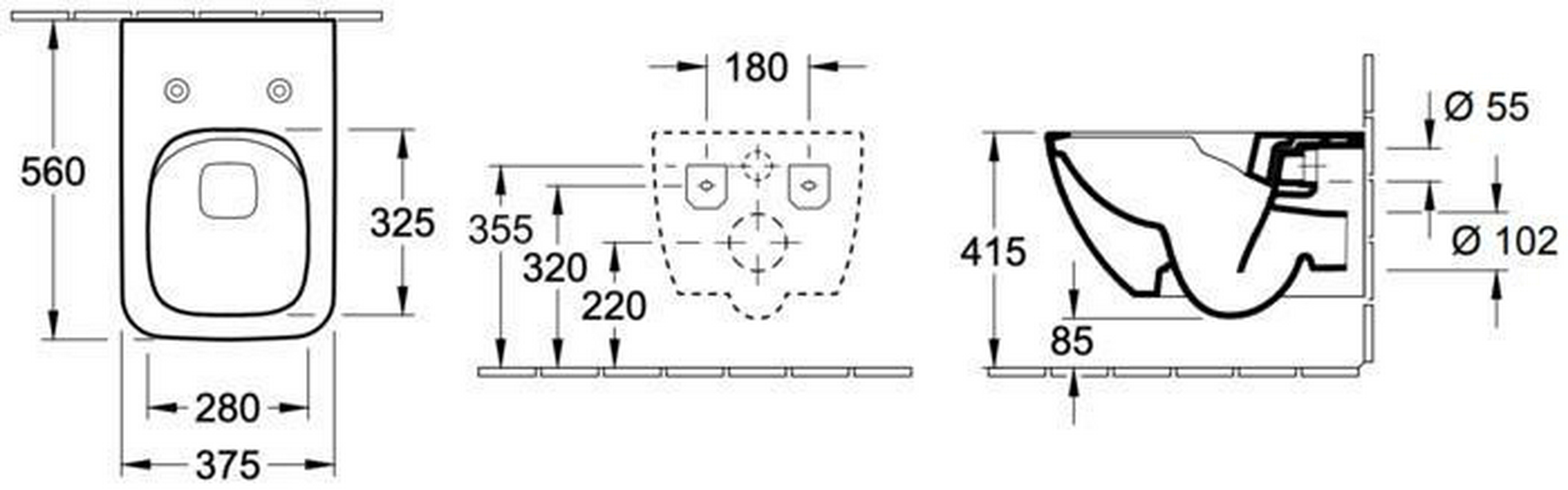 Унитаз подвесной Villeroy & Boch Legato 5663RS01 alpin, безободковый| 56x37x33