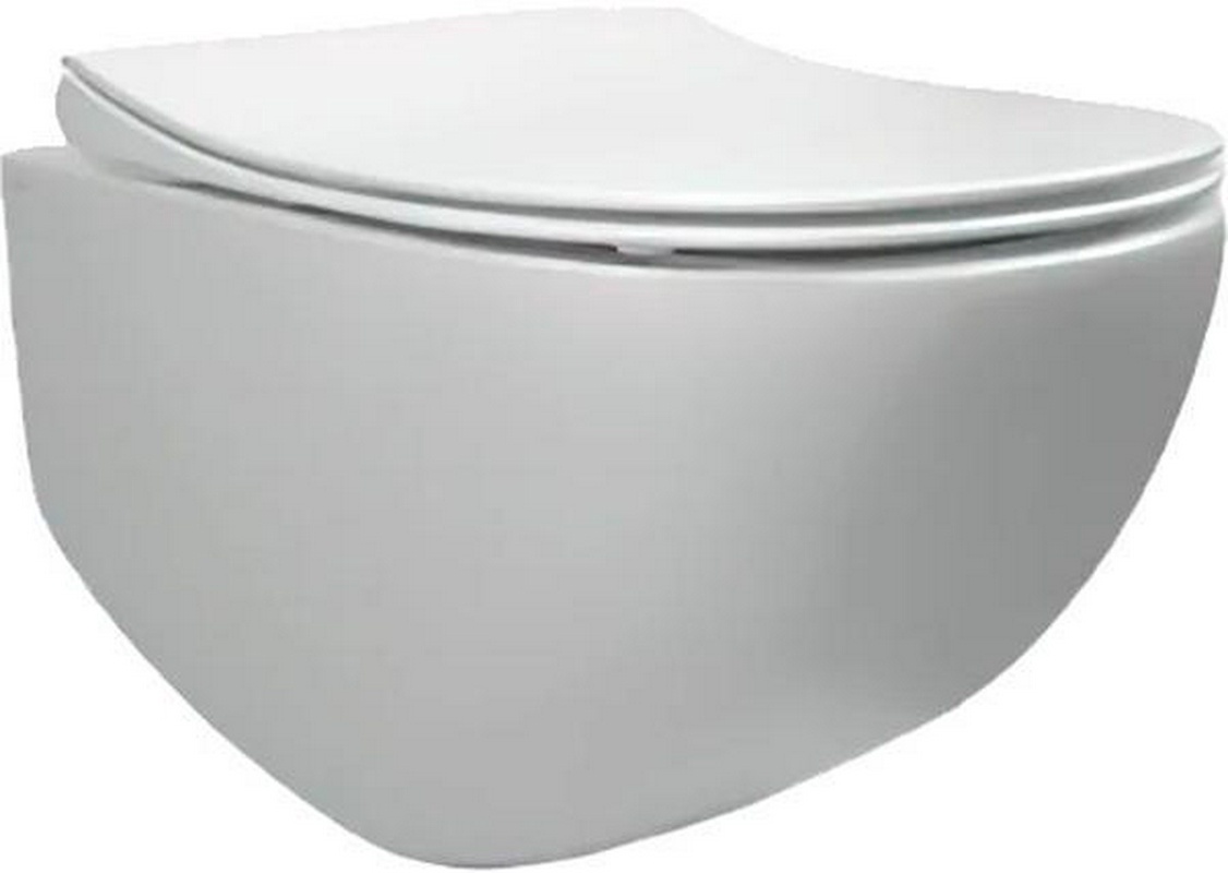 Унитаз подвесной 525х360мм, безободковый, сиденье с микролифтом, крепёж в компл., (цв.белый глянец), Ovo