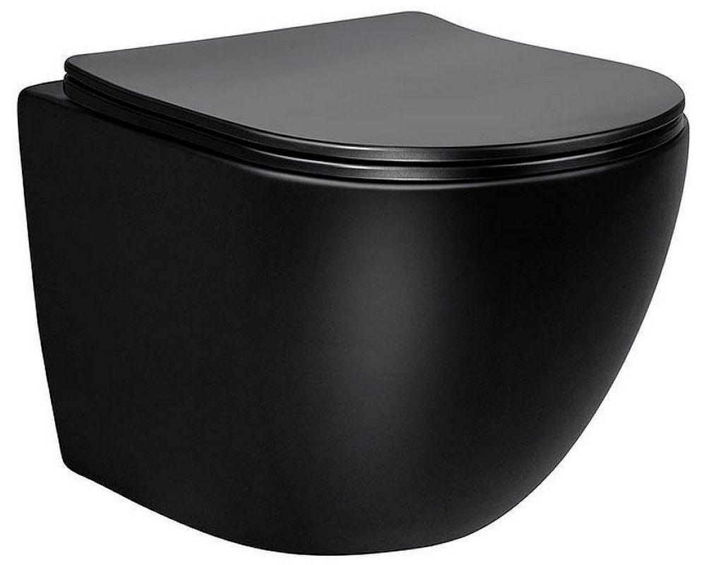 Унитаз подвесной 525х360мм, безободковый, сиденье с микролифтом, крепёж в компл., (цв.черный матовый), Ovo