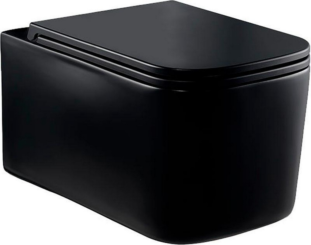 Унитаз подвесной, безободковый, 520x345x355мм, сиденье ультратонкое с микролифтом, крепеж в компл., (цв.матовый черный), Ultra ZZ