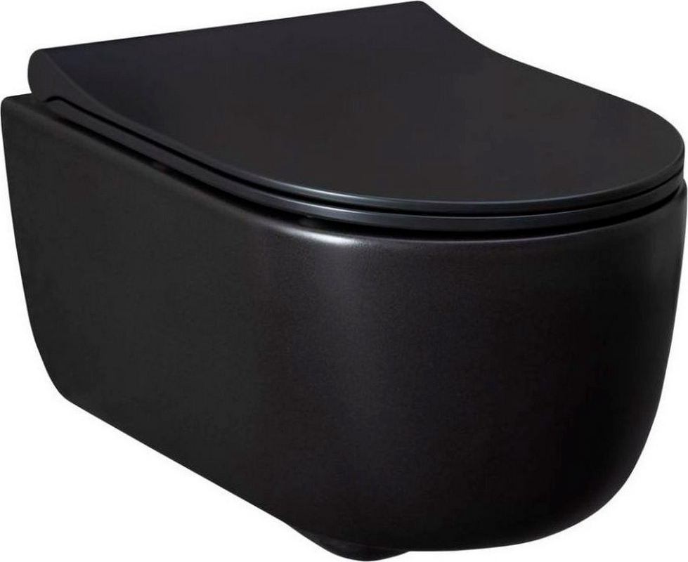 Унитаз подвесной, безободковый, 55х36см, сиденье с микролифтом, крепеж в компл., (цв.черный матовый), Bequem ZZ