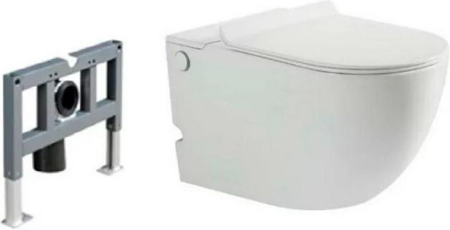 Подвесной унитаз c крышкой-сиденьем микролифт, безободковый, с импульсной системой смыва, инсталляция в комплекте, цв.белый ZZ