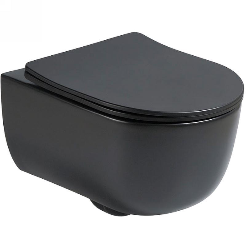 Унитаз подвесной, безободковый, 490x355x320мм, сиденье с микролифтом, (цв.черный матовый), Evo ZZ