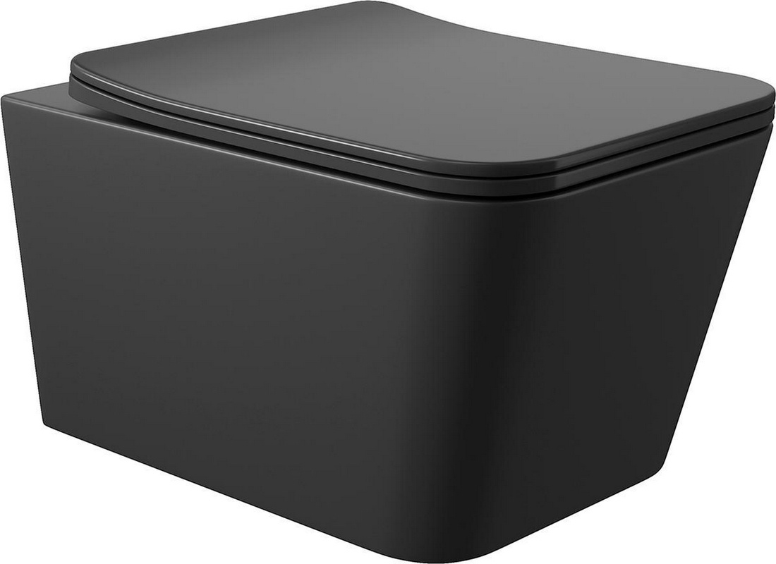 Унитаз подвесной 520х370мм, безободковый, сиденье с микролифтом, крепёж в компл., (цв.черный матовый), Macio