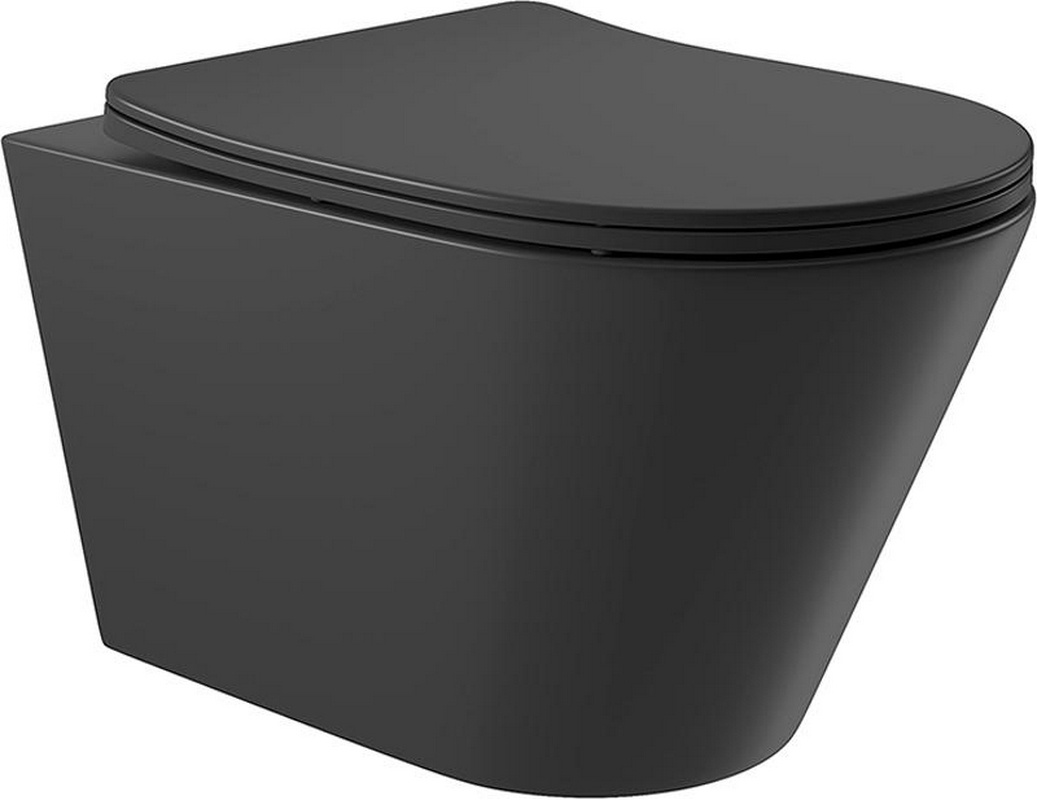 Унитаз подвесной 525х360мм, безободковый, смыв Tornado, сиденье с микролифтом, крепёж в компл., (цв.черный матовый), ZZ Aqueduto Cone Tornado CONT2140
