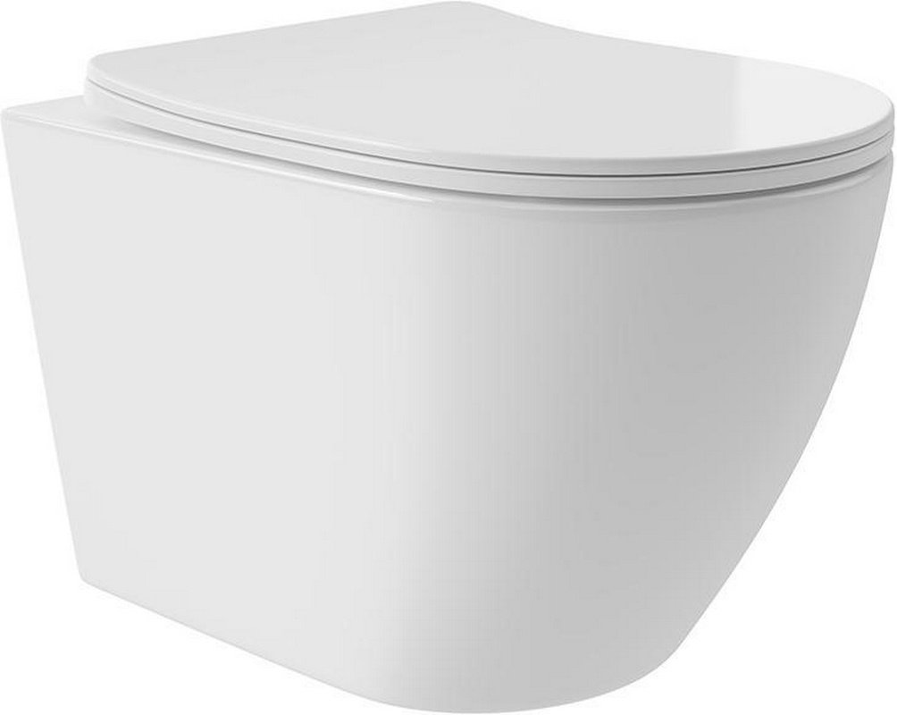 Унитаз подвесной 520х365мм, безободковый, смыв Tornado, сиденье с микролифтом, крепёж в компл., (цв.белый глянец), Ovo Plus