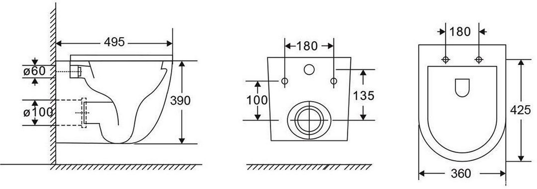 Унитаз подвесной, безободковый, 495х360х390мм, смыв Tornado, сиденье ультратонкое с микролифтом, крепеж в компл., (цв.белый), Q-Line ZZ