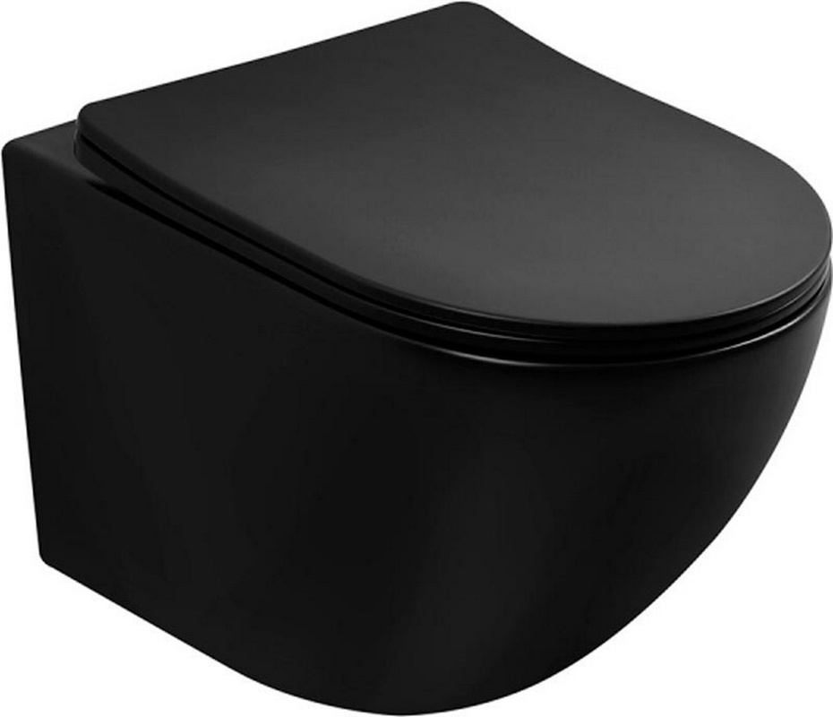 Унитаз подвесной 525х360мм, безободковый, сиденье с микролифтом, крепёж в компл., (цв.черный матовый), Ovo