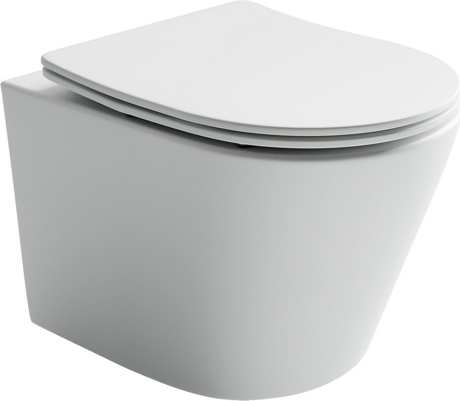 Унитаз подвесной 520х370мм, безободковый, сиденье с микролифтом, крепёж в компл., (цв.белый матовый), Macio