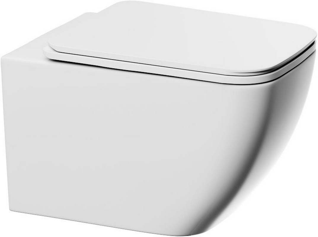 Унитаз подвесной 525х360мм, безободковый, сиденье с микролифтом, крепёж в компл., (цв.белый матовый), Ovo
