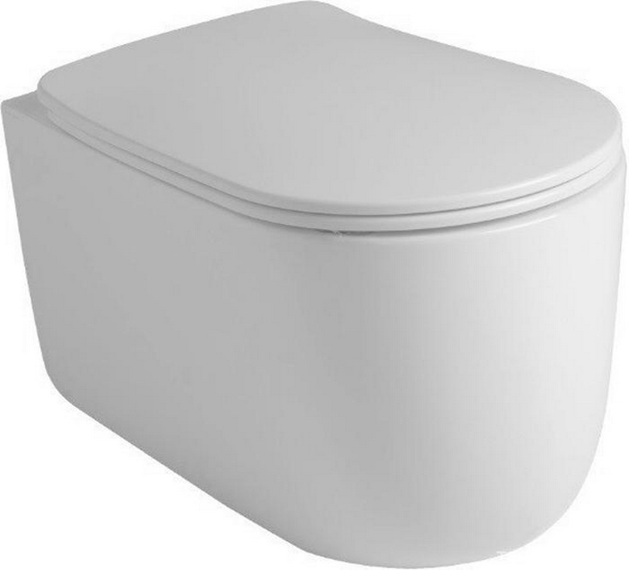 Унитаз подвесной 525х360мм, безободковый, сиденье с микролифтом, крепёж в компл., (цв.белый матовый), Ovo