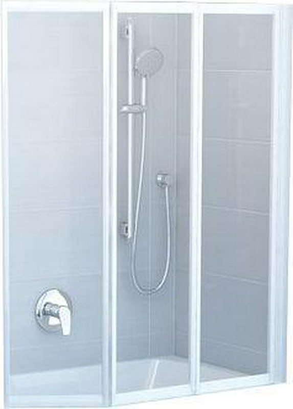 Шторка VS3 130 см для ванны трех элементная, профиль сатин, стекло прозрачное ZZ