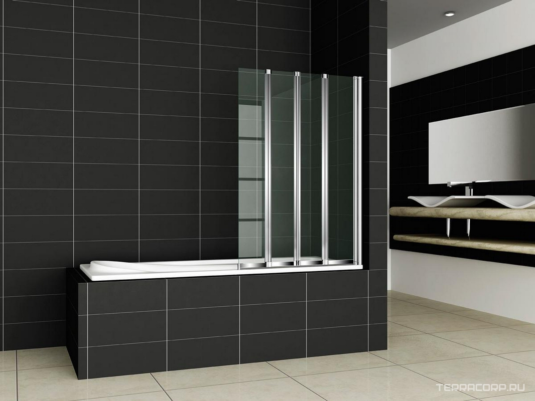Штора на ванну, 4-х секционная, складная, 1000хh1400мм, "Правая"/"Левая", (профиль цв.хром, стекло 5мм прозрачное), Pratico