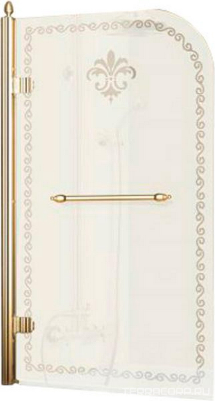 Штора на ванну 815хh1450мм, "Левая", поворотная, с полотенцедержателем, (стекло матовое с прозр./узором, 8мм, фурн/цв.бронза), Retro ZZ