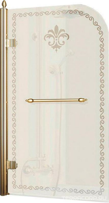 Штора на ванну 815хh1450мм, "Левая" петли слева, поворотная, с полотенцедержателем, (стекло матовое с прозр./узором, 8мм, фурн/цв.золото), Retro ZZ