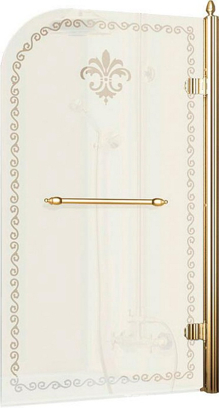 Штора на ванну 815хh1450мм, "Правая", петли справа, поворотная, с полотенцедержателем, (стекло матовое с прозр./узором, 8мм, фурн/цв.золото), Retro ZZ