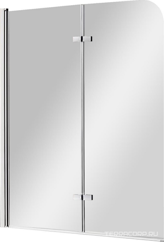 Штора на ванну складная 2-х секционная, 1200х1400мм, крепление СПРАВА/СЛЕВА, (проф.цв.хром, стекло 6мм прозрачное), Eco ZZ