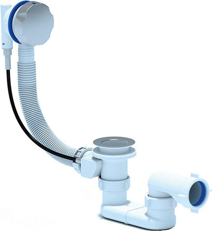 Слив-перелив для ванны, полуавтомат, стандатный, длина гофры 520мм, ручка перелива и пробка слива пластик цв.хром в компл., Cezares ZZ